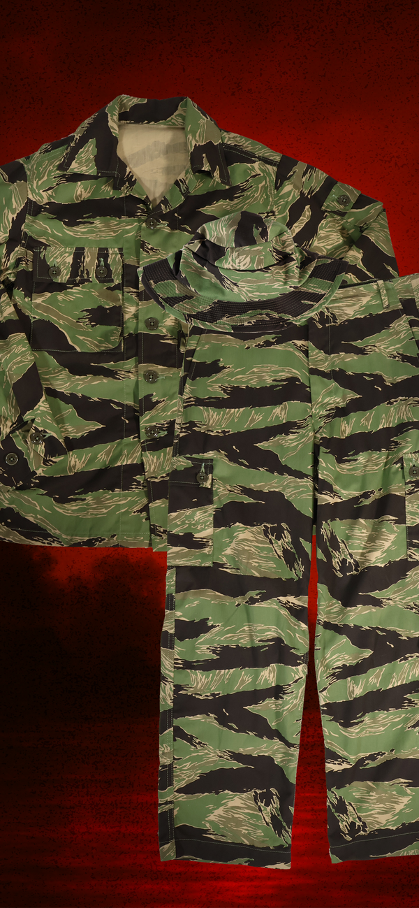 Tiger stripes used in the Vietnam War are our most focused product. We sell not only vintage Tigers, etc., but also precisely reprinted reproductions made in Japan, as well as manufacturing and selling reprinted novelty clothing of the period.